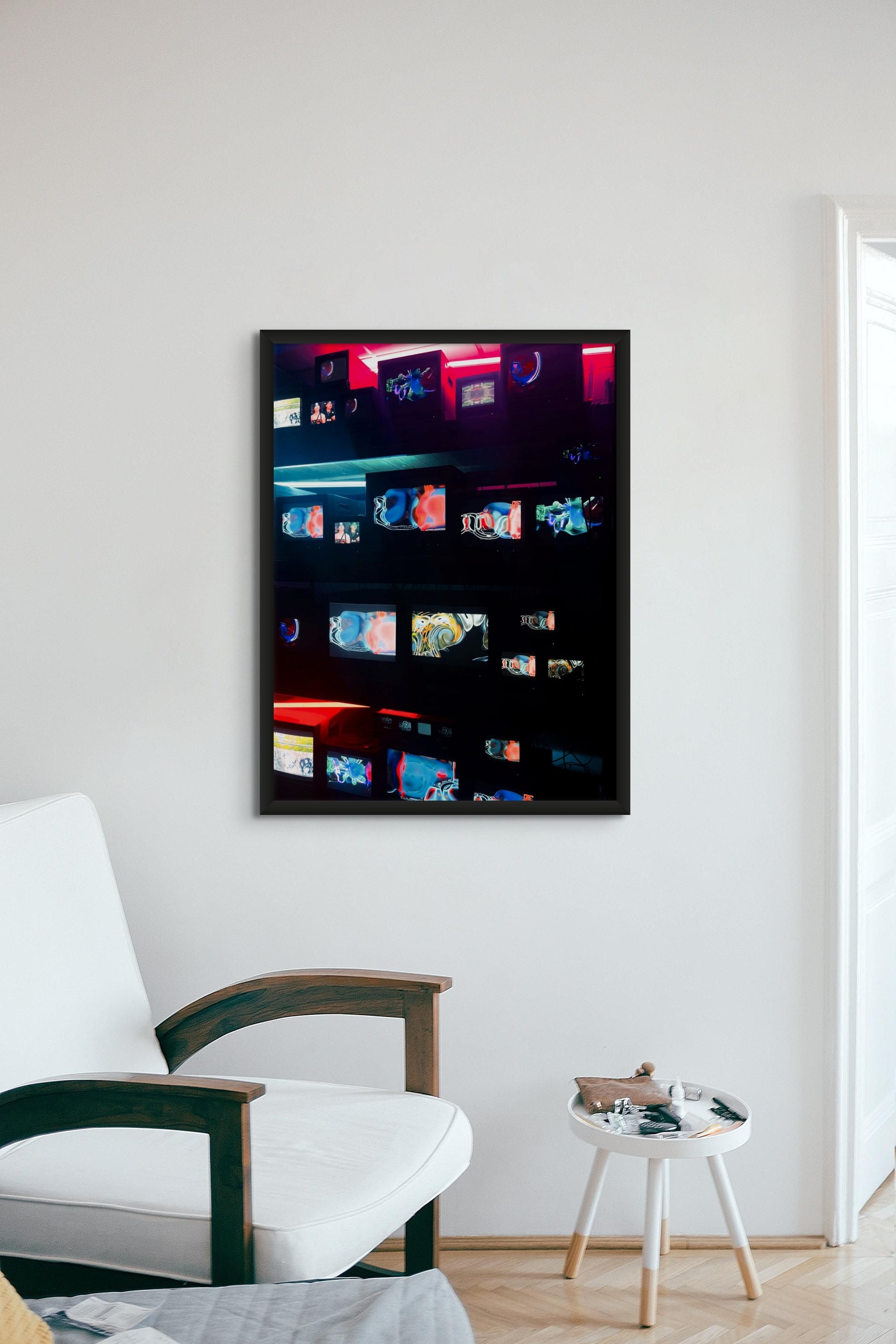 Agregue un toque futurista a su espacio con esta impresión inspirada en el arte digital que presenta pantallas vibrantes y patrones abstractos. Perfecta para entusiastas de la tecnología e interiores modernos, esta pieza crea una atmósfera audaz y creativa en oficinas, estudios o áreas de entretenimiento.