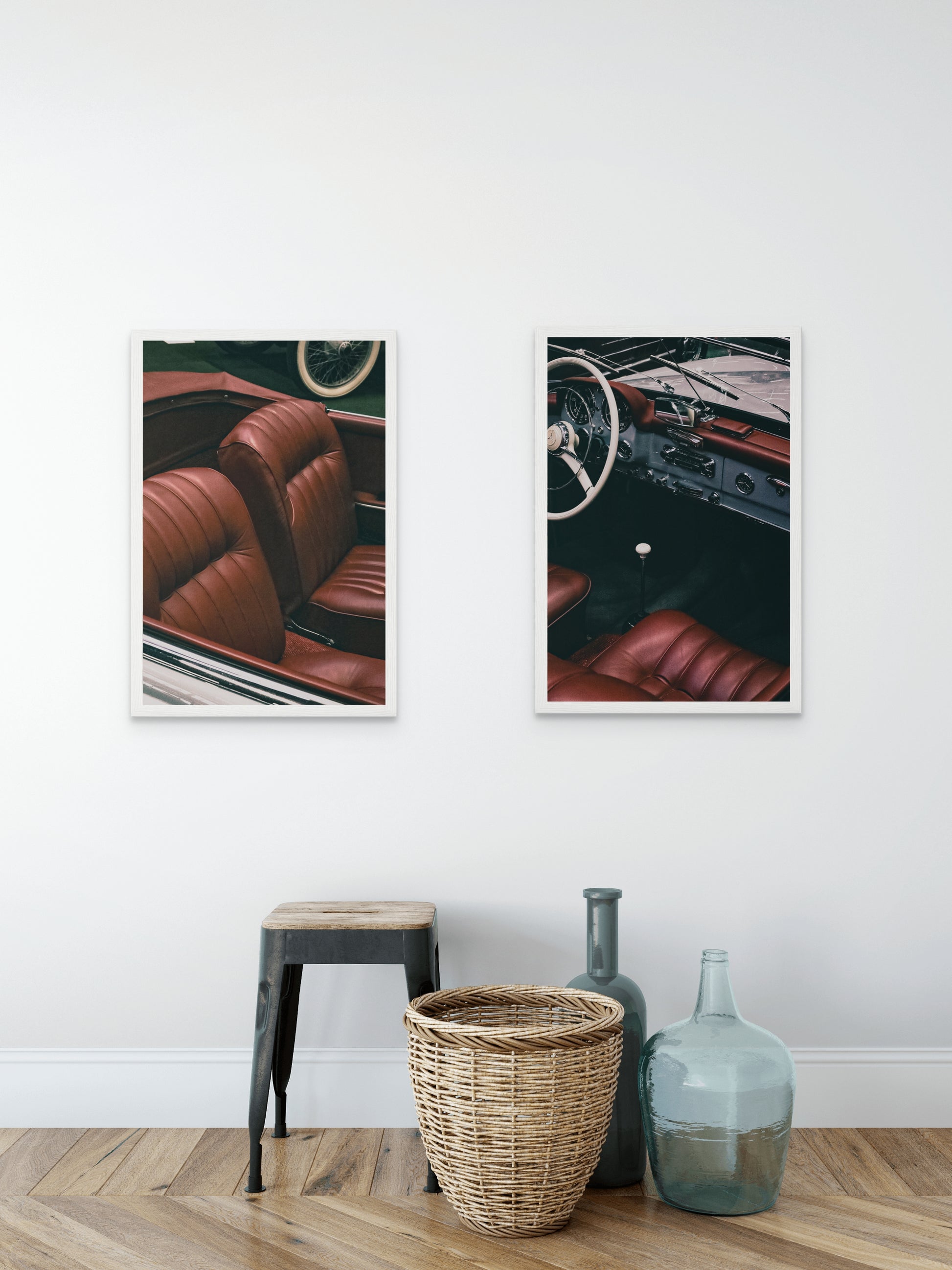 Una elegante fotografía del interior de un Mercedes clásico de época , con un volante de época y lujosos asientos de cuero rojo. El diseño atemporal de este automóvil de lujo rezuma sofisticación y artesanía, lo que lo convierte en una pieza ideal para los entusiastas de los automóviles.