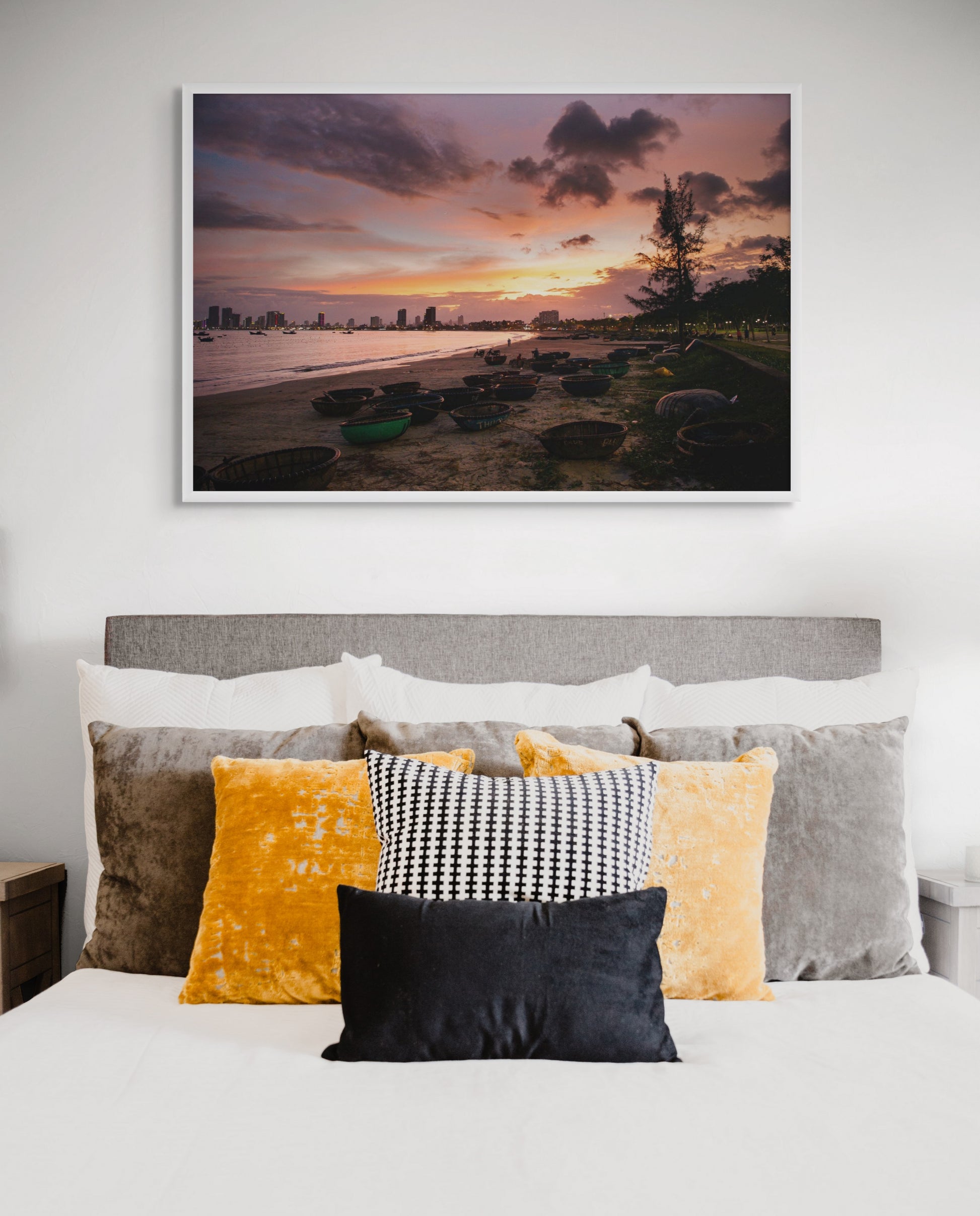 Una puesta de sol fascinante que proyecta colores vibrantes sobre el cielo y el océano, con acantilados rocosos que enmarcan la vista. La escena pacífica pero dramática captura la belleza de la naturaleza, ideal para quienes aprecian los paisajes marinos impresionantes y los momentos de serenidad.
